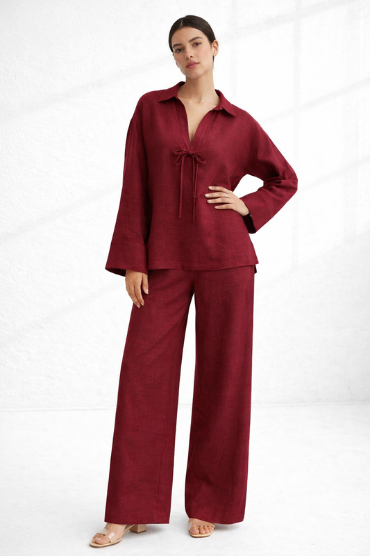Vanya Wine Linen Set For Women