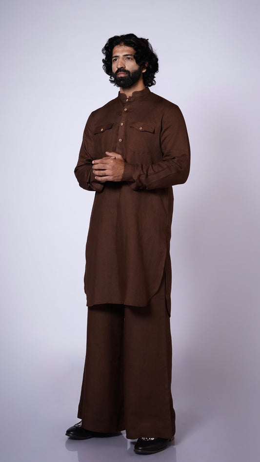 Mocha Brown Linen Co-Ord Set - Includes Pair of Pants and Full Sleeves Shirt