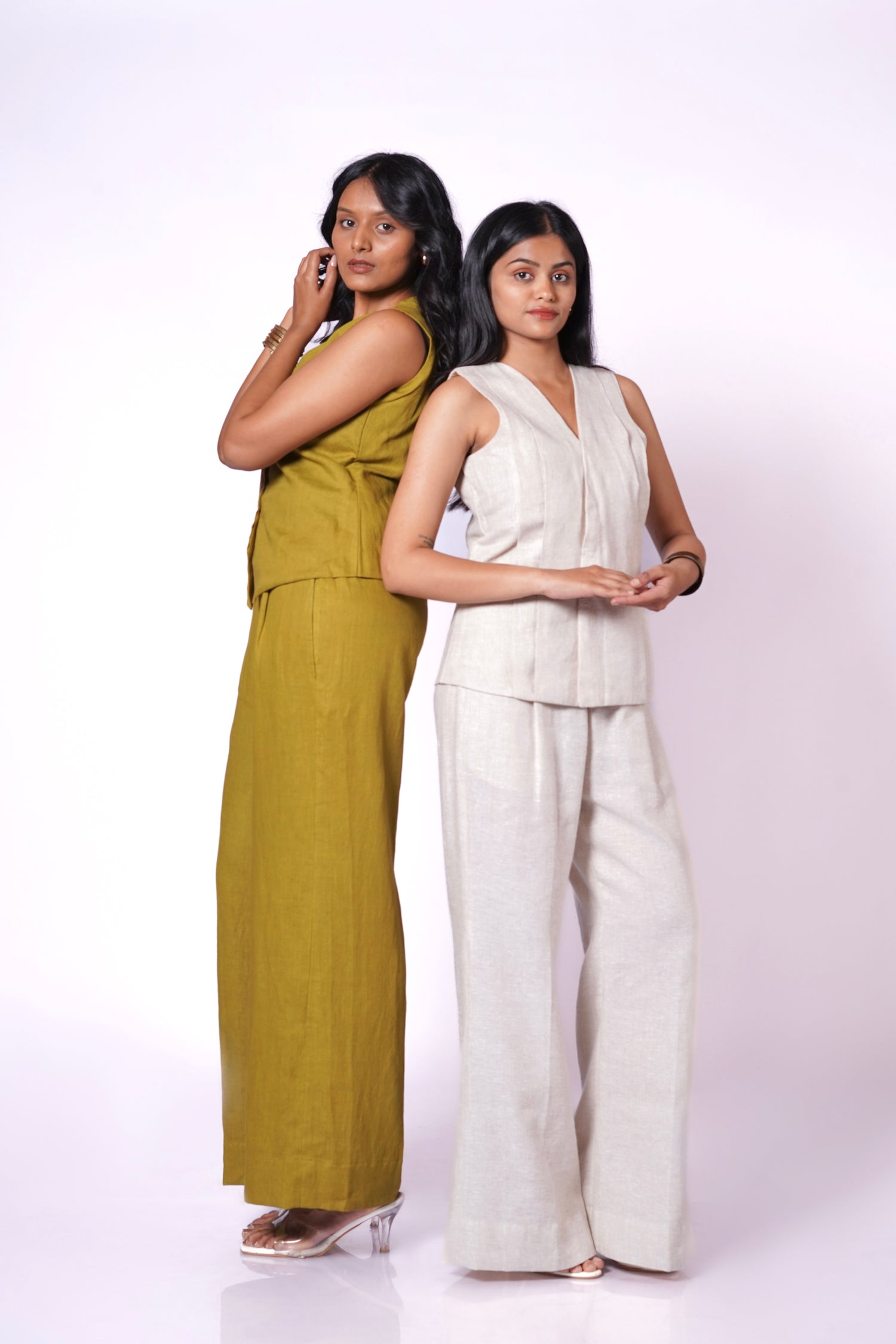 Earthy Natural Linen Co-Ord Set - Includes Pair of Pants and Full Sleeves Shirt