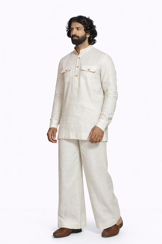 HIRANYAM LINEN MEN'S LONG KURTA SET