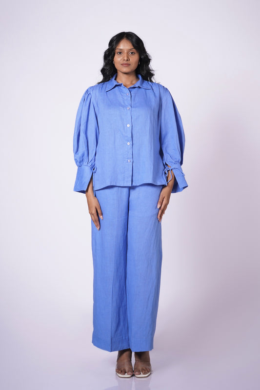 Ocean Blue Linen Co-Ord Set - Includes Pair of Pants and Full Sleeves Shirt