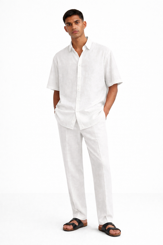 Pearl White Linen Set – Half Sleeves Shirt & Pants