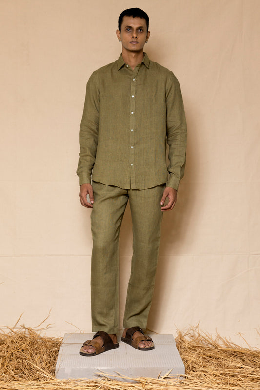 Olive Green Men's Linen Co-ord set