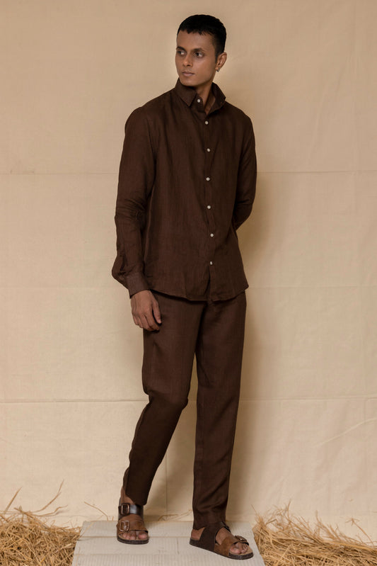 Mocha Brown Co-ord Set- Includes Pair of Pants and Regular Collar shirt