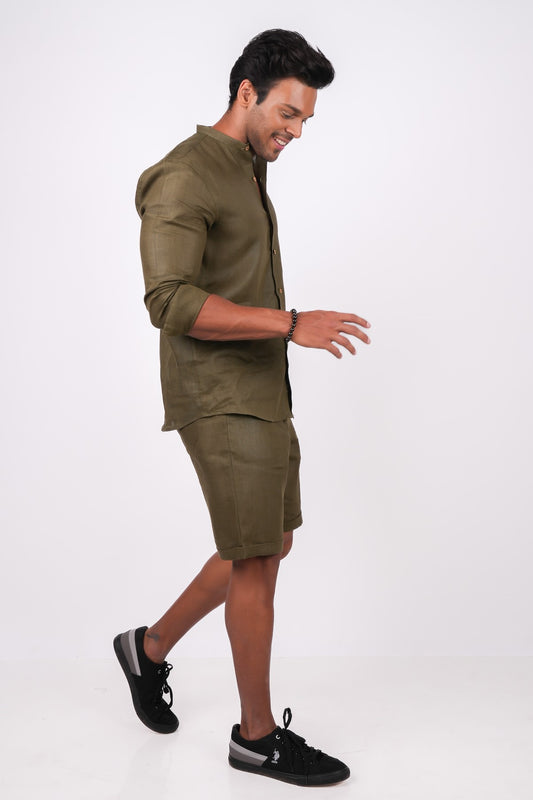 Forest Green Co-ord Set- Includes Pair of Shorts and Chinese Collar shirt