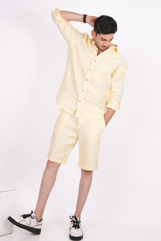 Sunshine Yellow Co-ord Set- Includes Pair of Shorts and Regular Collar shirt