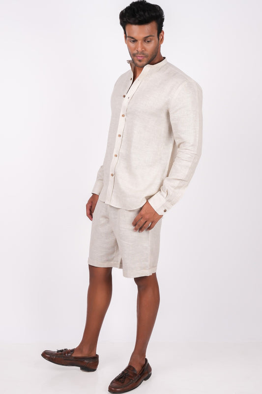 Earthy Natural Co-ord Set- Includes Pair of Shorts and Chinese Collar shirt