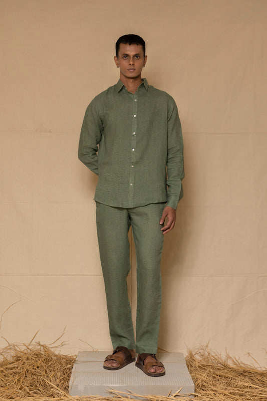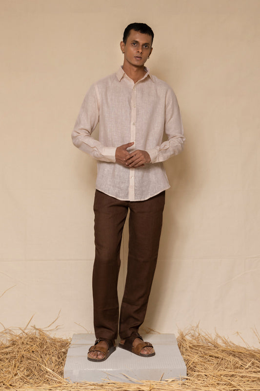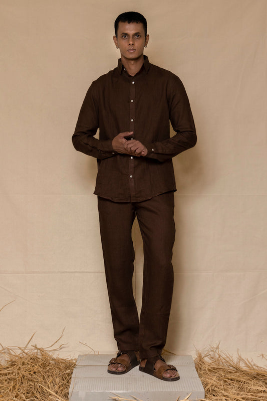 Chocolate Brown Men's Linen Regular Collar Shirt