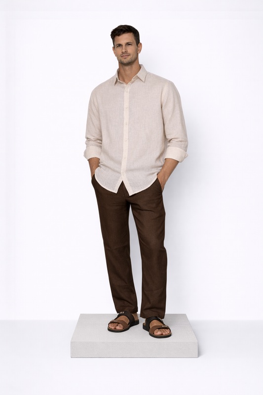 Chocolate Brown Linen Shirt for Men