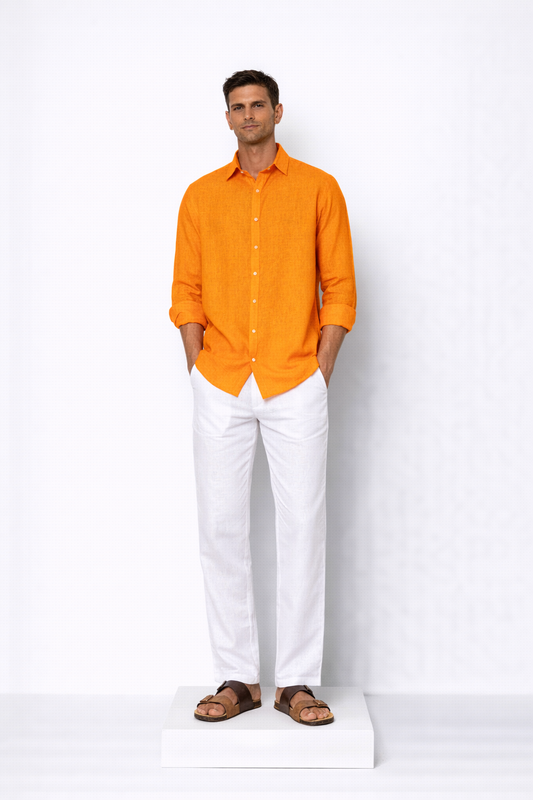 Orange Linen Shirt for Men