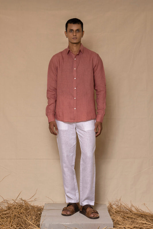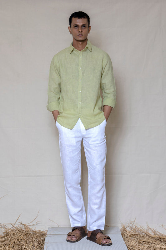 HARING HUES - EMBROIDERED PURE LINEN SHIRT MEN