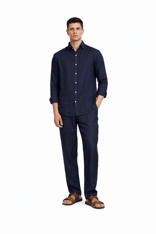 Navy Blue Linen Shirt for Men