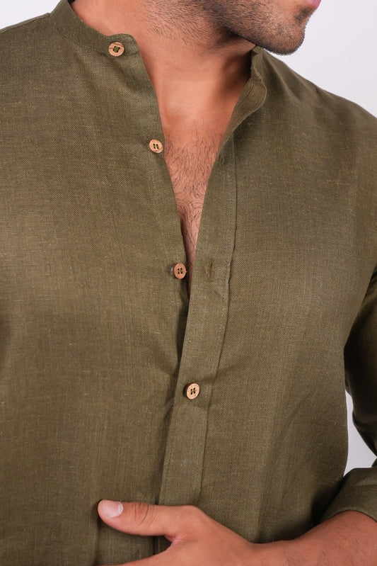 Forest Green Chinese Collar Shirt