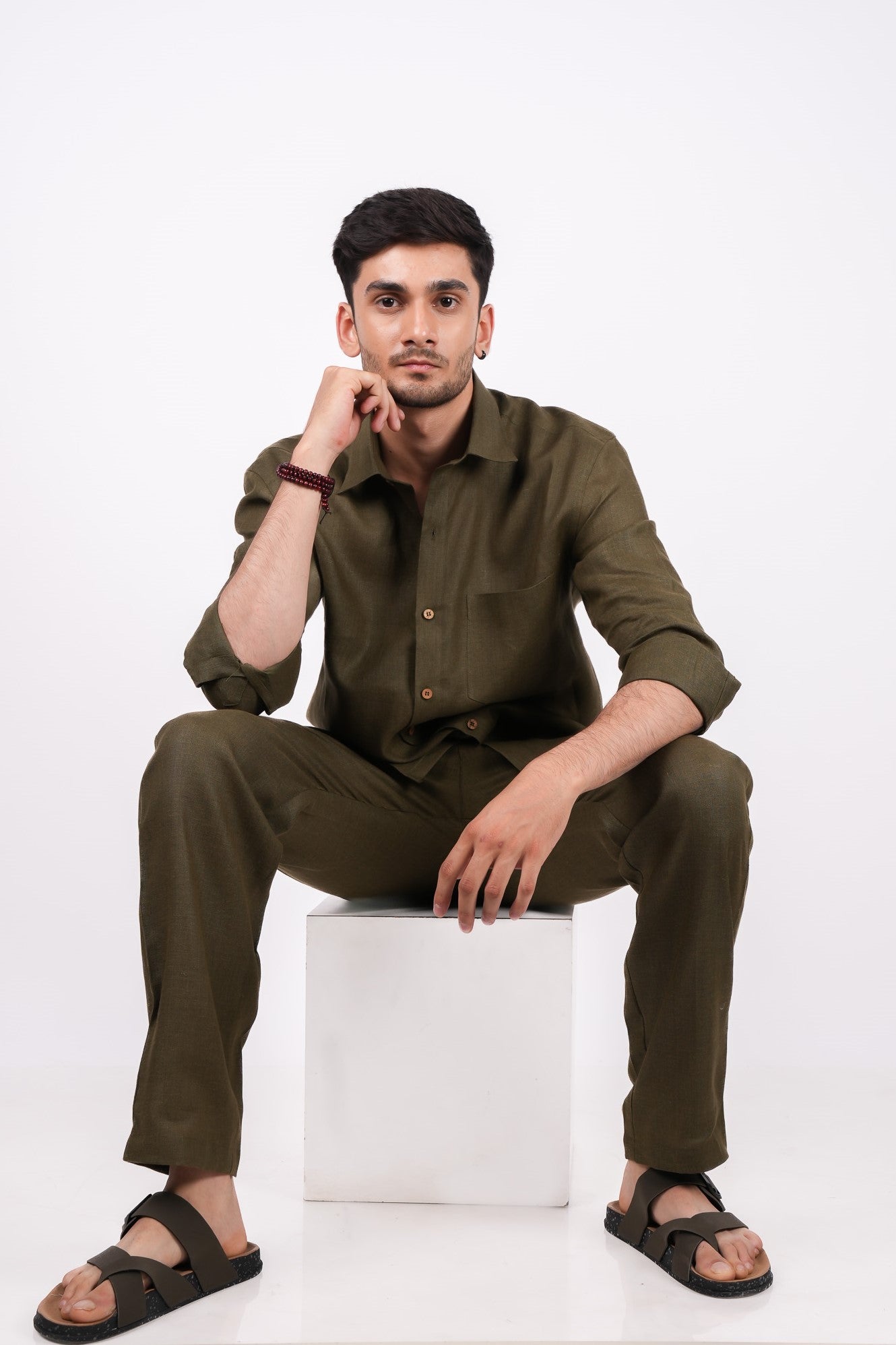 Step into the serene surroundings with our Forest Green Co-ord Set. The set includes a pair of comfortable pants and a regular collar shirt, crafted from 100% pure linen in a refreshing dark green hue. Perfect for resort wear or laid-back lounging, this lightweight and stylish outfit will keep you cool and comfortable throughout the day. Pair with your favorite shoes or sliders for a casual yet polished look.
