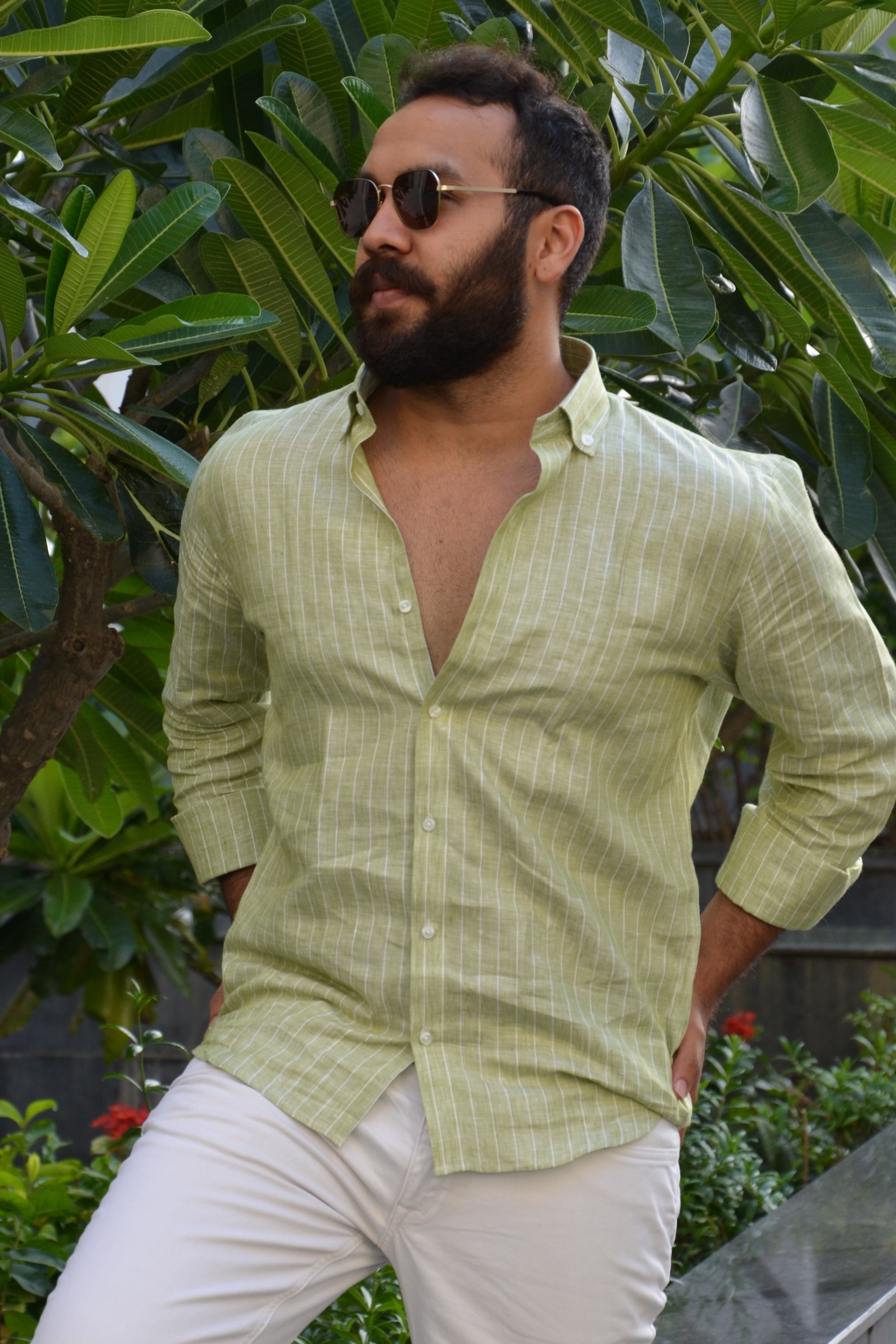 Escape to an island paradise with our "Island Escape" Linen Shirt from the Voyage collection. Crafted from 100% European Flax Linen, its textured and lightweight weave offers exceptional comfort. The refreshing green hue complements its button-down collar, creating a versatile and stylish look. Embrace the allure of linen's natural breathability and durability, as you embark on your own sartorial journey with this exquisite piece.