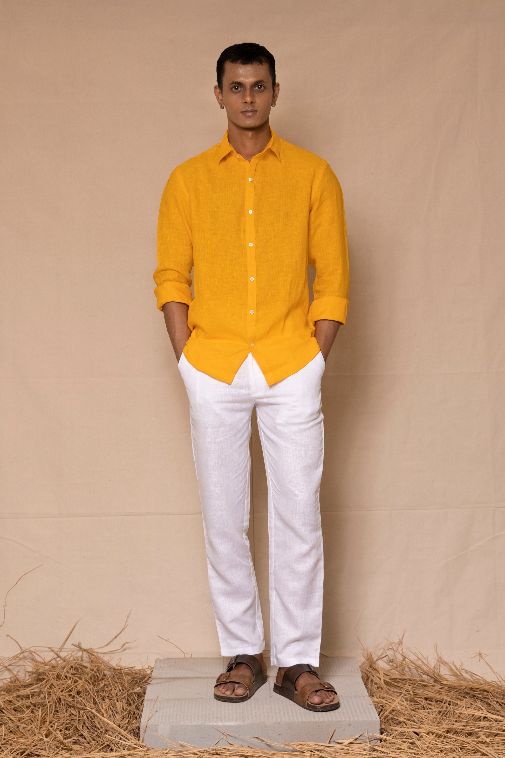 A classic linen shirt in a rich mango yellow, designed for a relaxed yet structured fit. Crafted from breathable, lightweight linen, it offers all-day comfort with a natural drape. The subtle texture, soft finish, and timeless silhouette make it a versatile addition to any wardrobe.