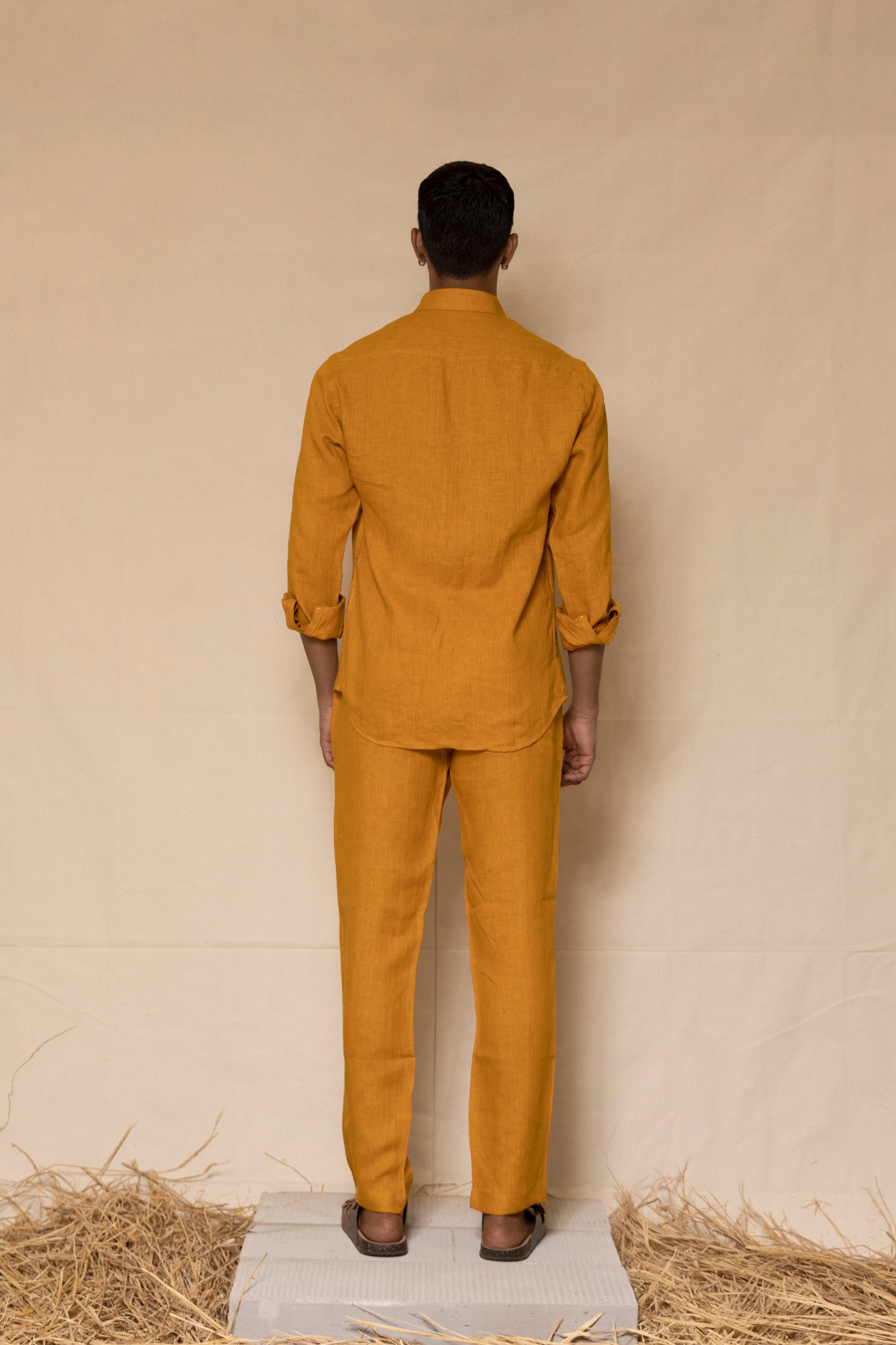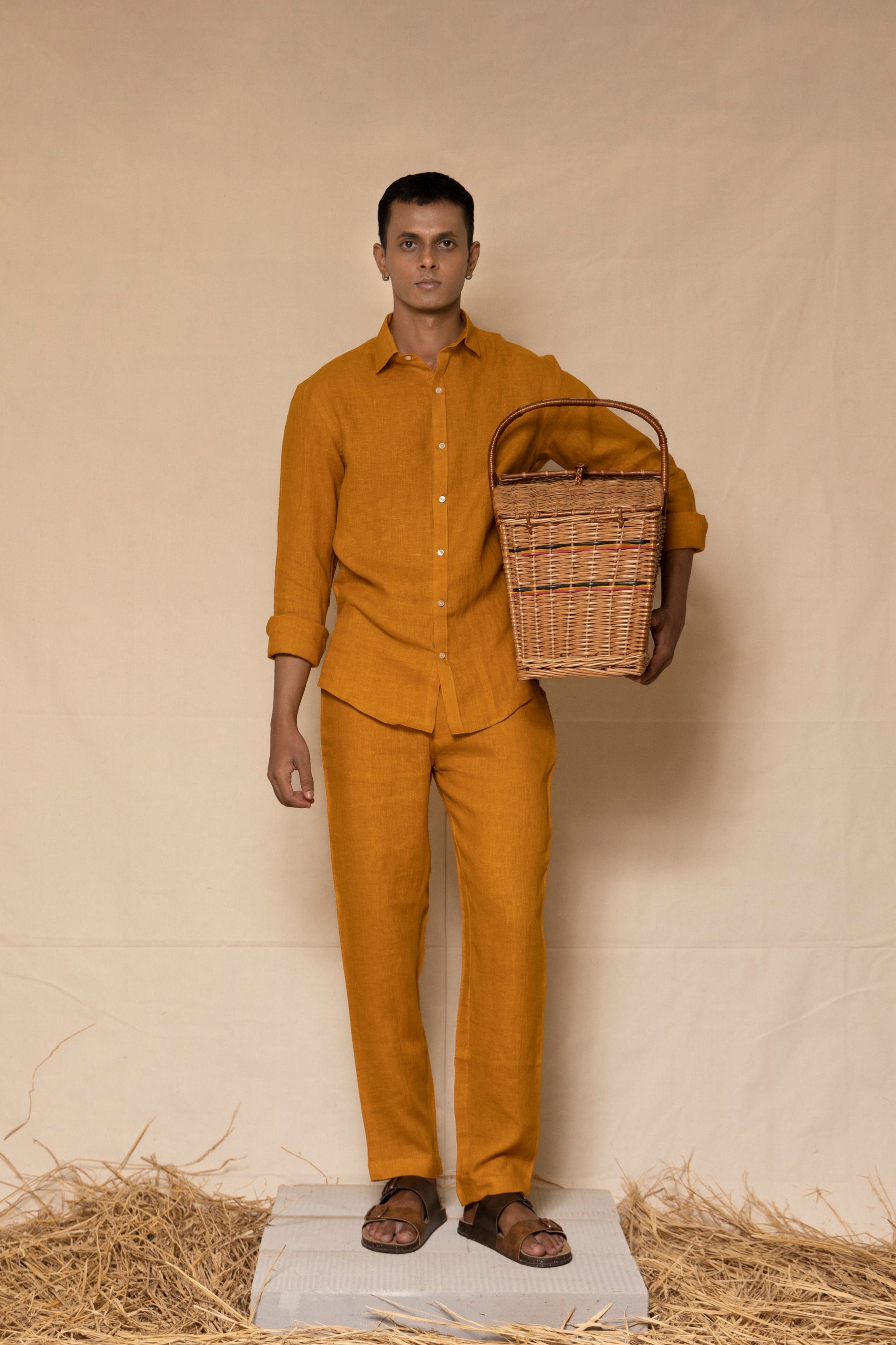 Infused with warmth and character, these mustard linen pants offer a relaxed fit with a partially elasticated waistband, belt loops, and drawstring for a secure yet easy fit. Side and back pockets add function, while the breathable linen fabric ensures effortless movement and comfort.