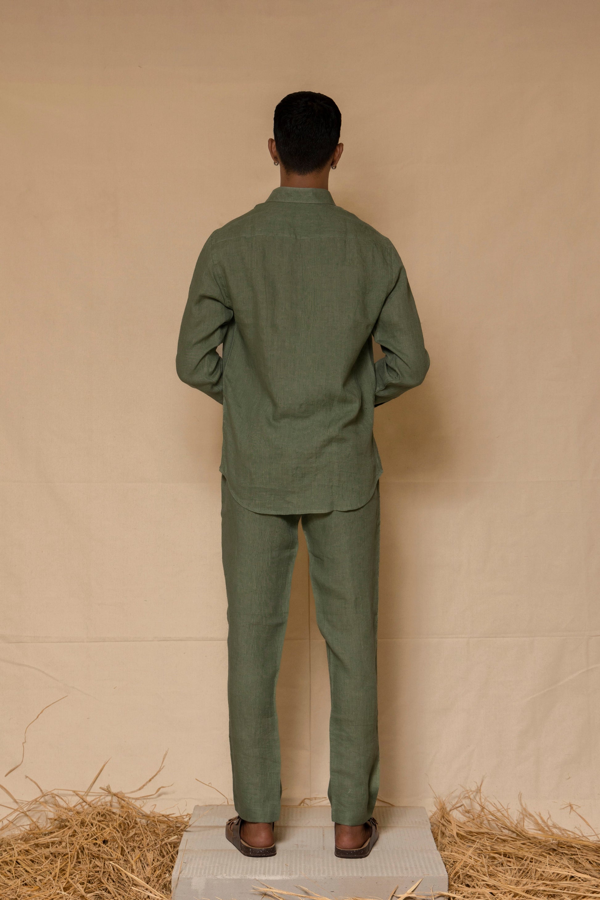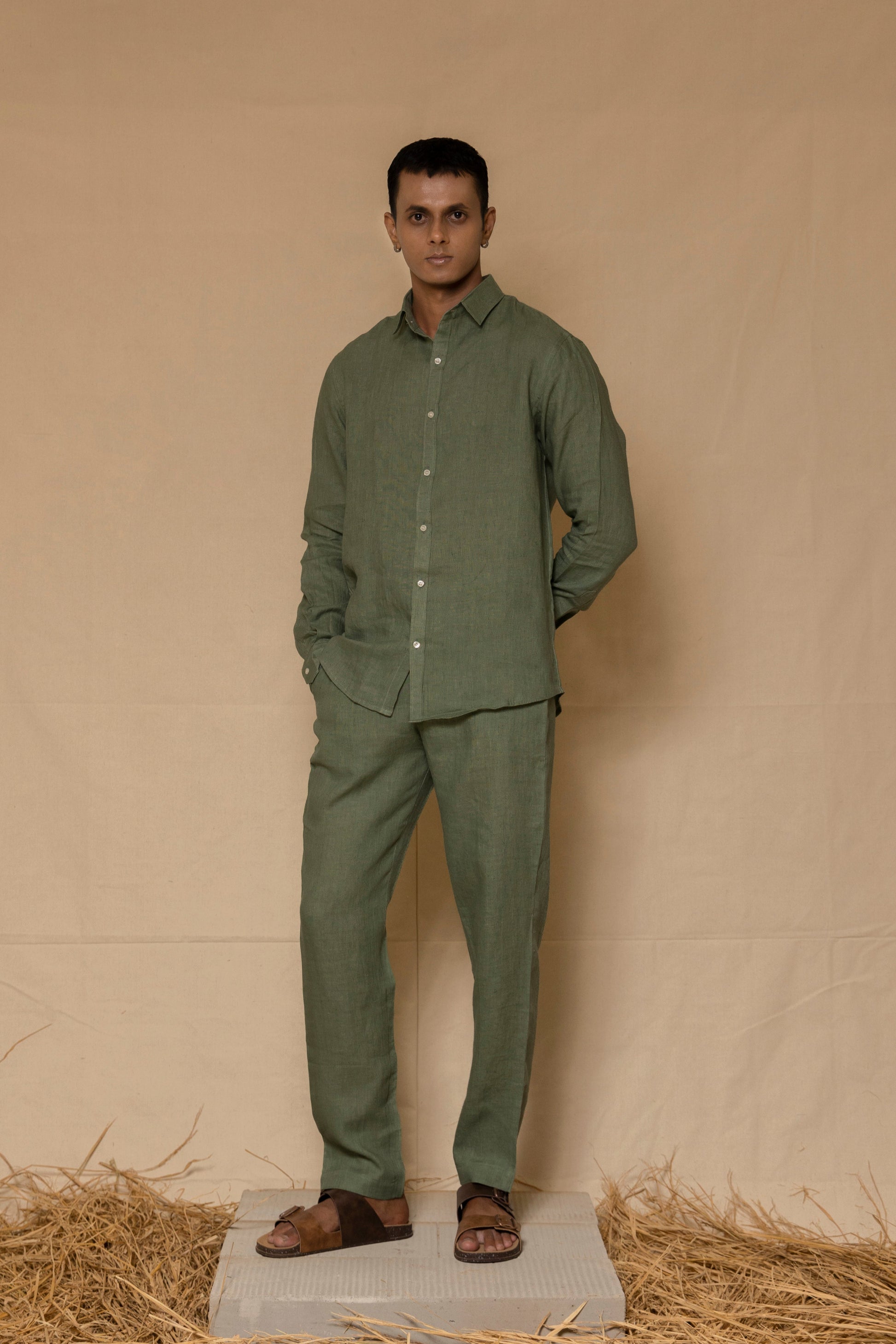 Designed for understated elegance, this sage green linen shirt features a regular collar and a tailored yet relaxed fit. Crafted from pure linen, it offers a lightweight, breathable feel with a soft texture that refines over time. A versatile piece with a timeless, sophisticated charm.