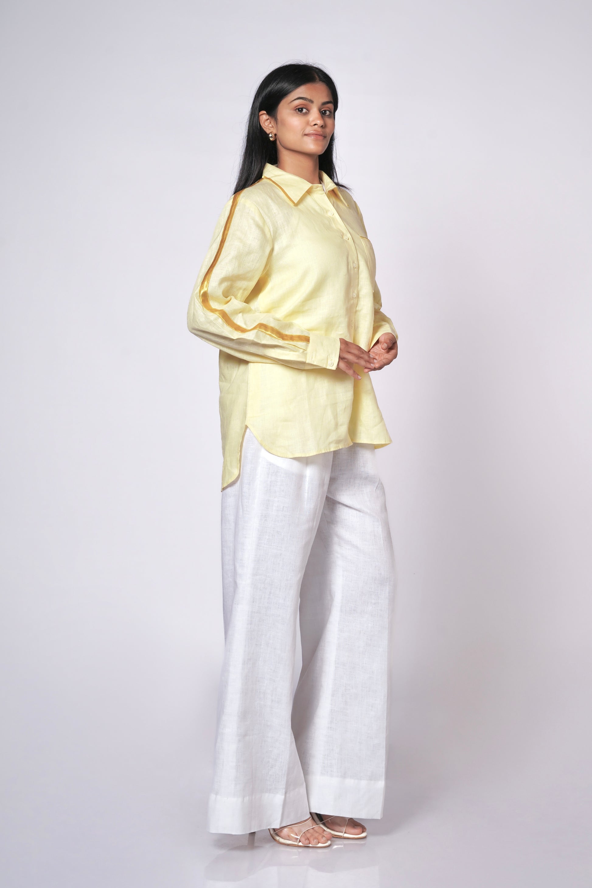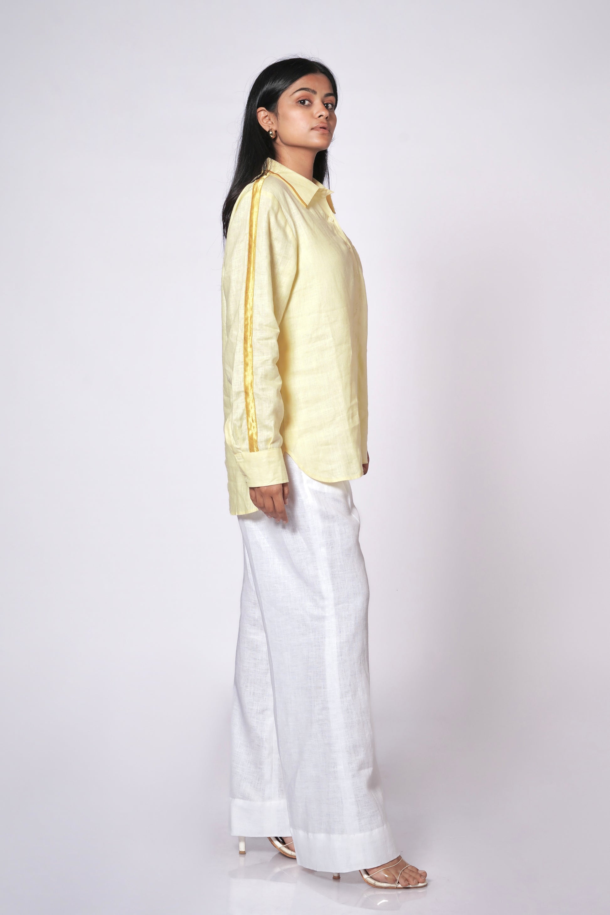 SUNSHINE YELLOW LINEN SHIRT WITH SATIN DETAILING