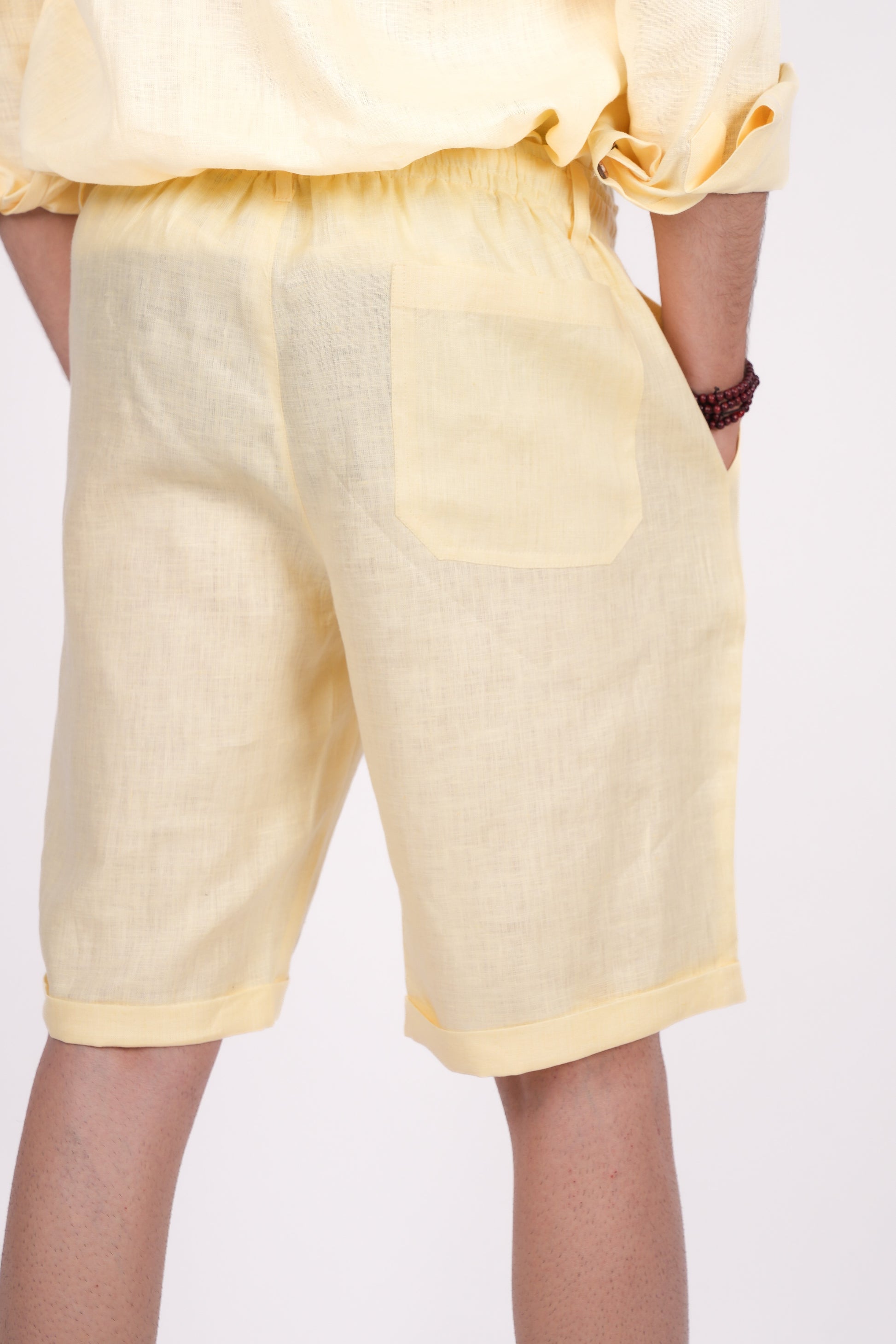 Elevate your summer wardrobe with our Sunshine Yellow Linen Shorts. Crafted from 100% pure linen, these shorts offer a lightweight and breathable option for your casual ensemble. The partially elasticated waist and multiple pockets provide a practical finish. Wear them to the beach, brunch, or a day out, and pair them with a crisp white shirt or casual polo tee for a stylish yet comfortable look.